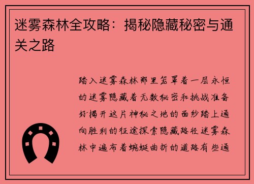 辐射工厂通关攻略 引言 辐射工厂是一款备受玩家喜爱的电脑游戏,其独特的剧情和挑战性的关卡设计吸引了众多玩家的关注。本文将为玩家们提供一些快速通关辐射工厂的攻略,帮助玩家们在游戏中取得更好的成绩。 1....